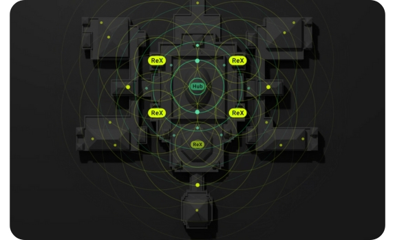 Security on a massive scaleReX is the radio signal range extender that boosts the range of all Ajax security system devices and manages their communication with the hub. The intelligent radio signal range extender enables users to place Ajax devices at a considerable distance from the hub for protecting multi-story offices, detached buildings, and even production plants. Connecting 5 ReXs to the security system extends its coverage to up to 35 km². Transmits alarms in 0.3 seconds Communicates at a distance1 of up to 1,800 m Operates up to 35 hours on the back-up battery | ![]() |