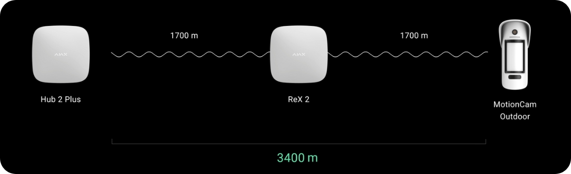 With the OS Malevich 2.13 operating system update, the ReX 2 Jeweller range extender will connect to the hub not only via radio but also via Ethernet using the wire as the only or prioritized communication channel. A single Ajax system can cover the facility like an office centre with underground parking, or a sectional metal hangar, or a warehouse complex of several large buildings.