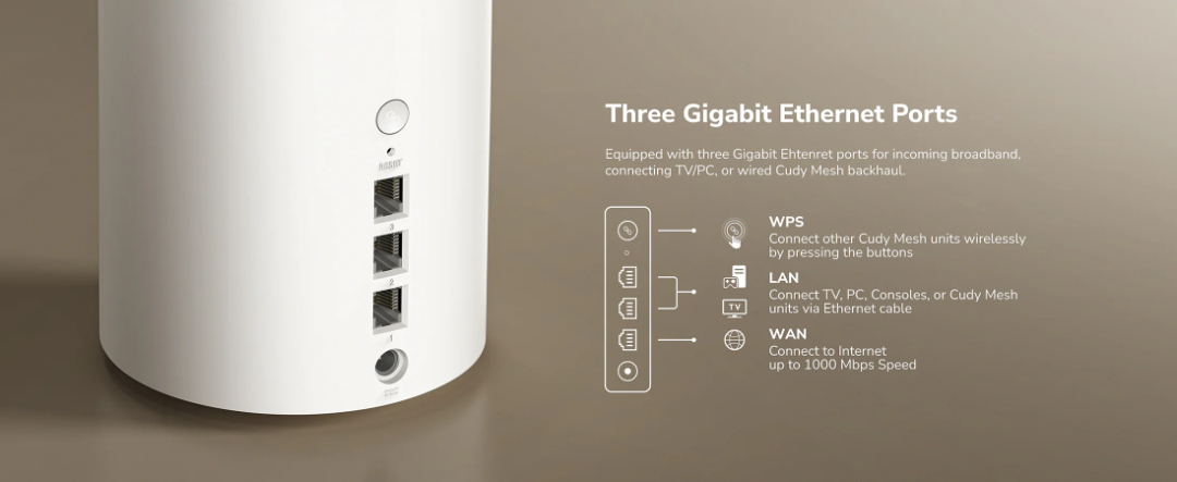 Pick one Mesh unit and set it up on your phone via the Cudy App. The elegent cylinder design compliments your home in any style.
