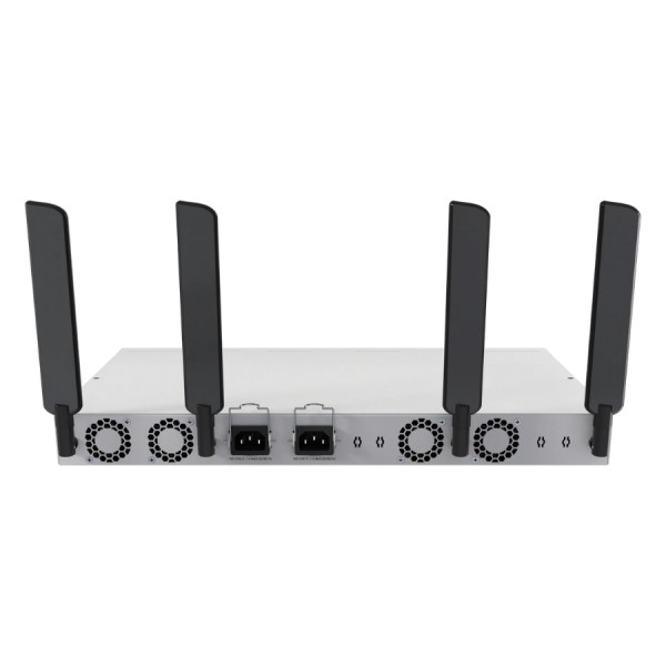 We know rackmounts are not famous for great wireless coverage. That’s why the CRS418 Wi-Fi edition includes dedicated holes in the back for pigtails, so you can place antennas outside the case if needed.