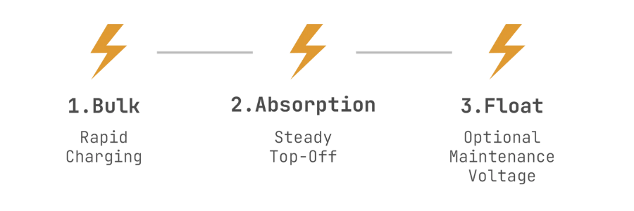 Charging is handled intelligently through three stages: