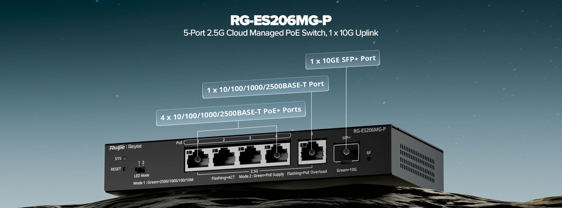 Reyee RG-ES206MG-P 5-Port 2.5G PoE Switch with 10G Uplink